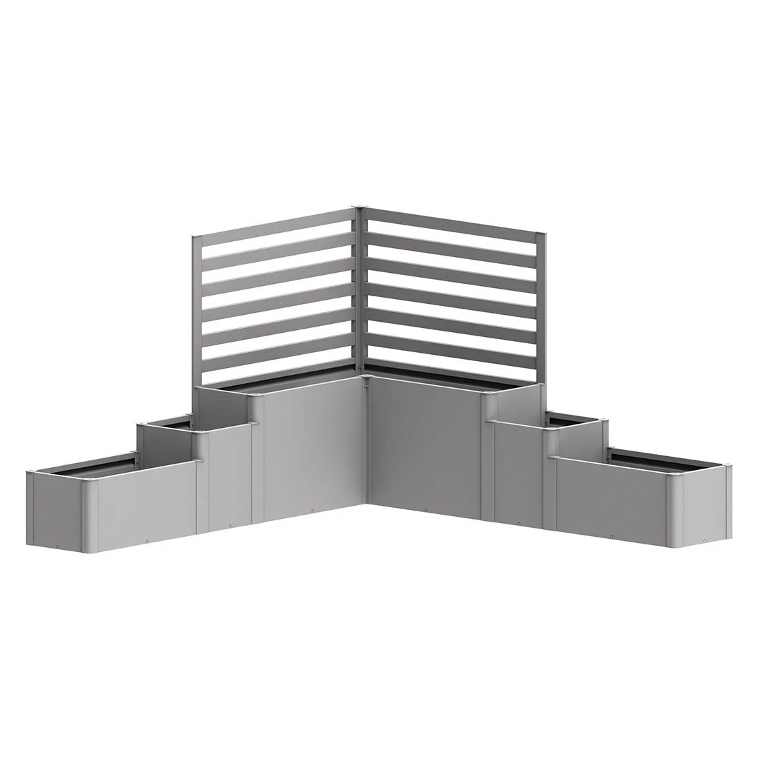 Sie suchen eine elegante Terrassenabgrenzung über Eck, die Ihnen sowohl als Sichtschutz als auch als stilvoller Pflanztrog dient? Mit dem Biohort DaVinci® Pflanzkasten-System Version 1 in Silber-Metallic sind Sie jetzt fündig geworden.