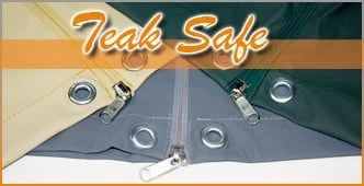 Diese atmungsaktiven Hauben sind auch, wo sie nicht mit Gummizug vor Windeinfluss bewahrt werden können, mit Metallösen versehen (Lieferumfang ohne Befestigungsschnur). Das Befestigen der Schutzhauben am Möbelstück ist somit ohne weiteres möglich. Reißverschlüsse gibt es da, wo es für die Funktion und Verwendung sinnvoll ist.