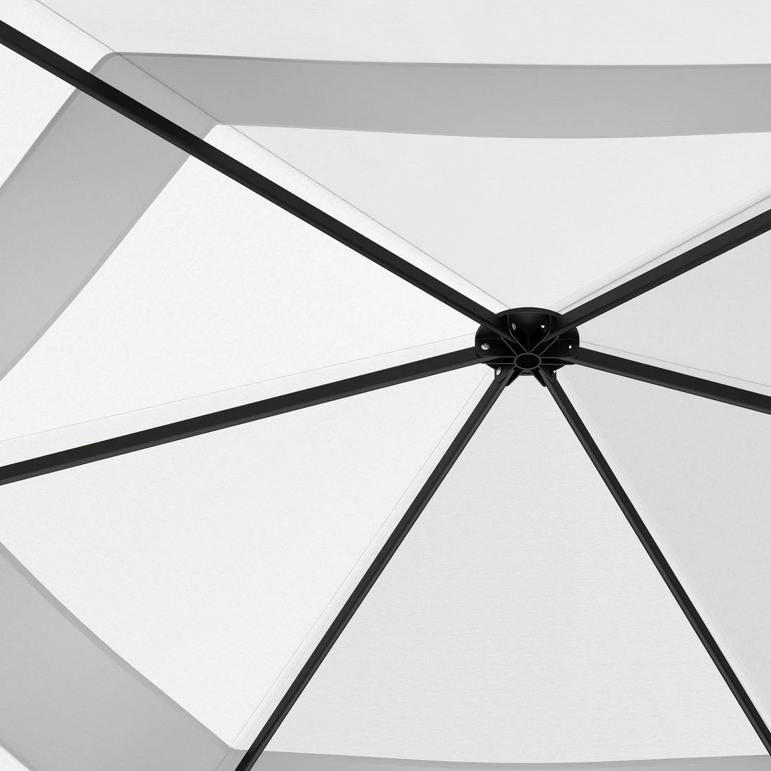Gefertigt ist das stabile Gestell aus anthrazitfarben pulverbeschichtetem Aluminium. Dieses Material ist überaus wetterbeständig und daher ideal, um im Outdoor-Bereich eingesetzt zu werden. Für die optimale Beschattung verfügt der sechseckige OUTLIV. Pavillon über ein robustes weißes Stoffdach, das sich bei Bedarf einfach abnehmen lässt. Zudem sind im Lieferumfang auch passende Stoffwände enthalten.