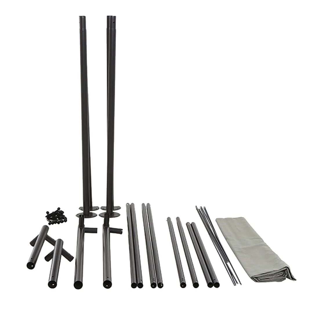 Das Dach ist aus Polyester gefertigt und dadurch bis zu einem gewissen Grad wasserabweisend. Auch das pulverbeschichtete Stahlgestell ist robust und witterungsbeständig, damit Sie lange Freude an Ihrem Sonnenschutz haben.