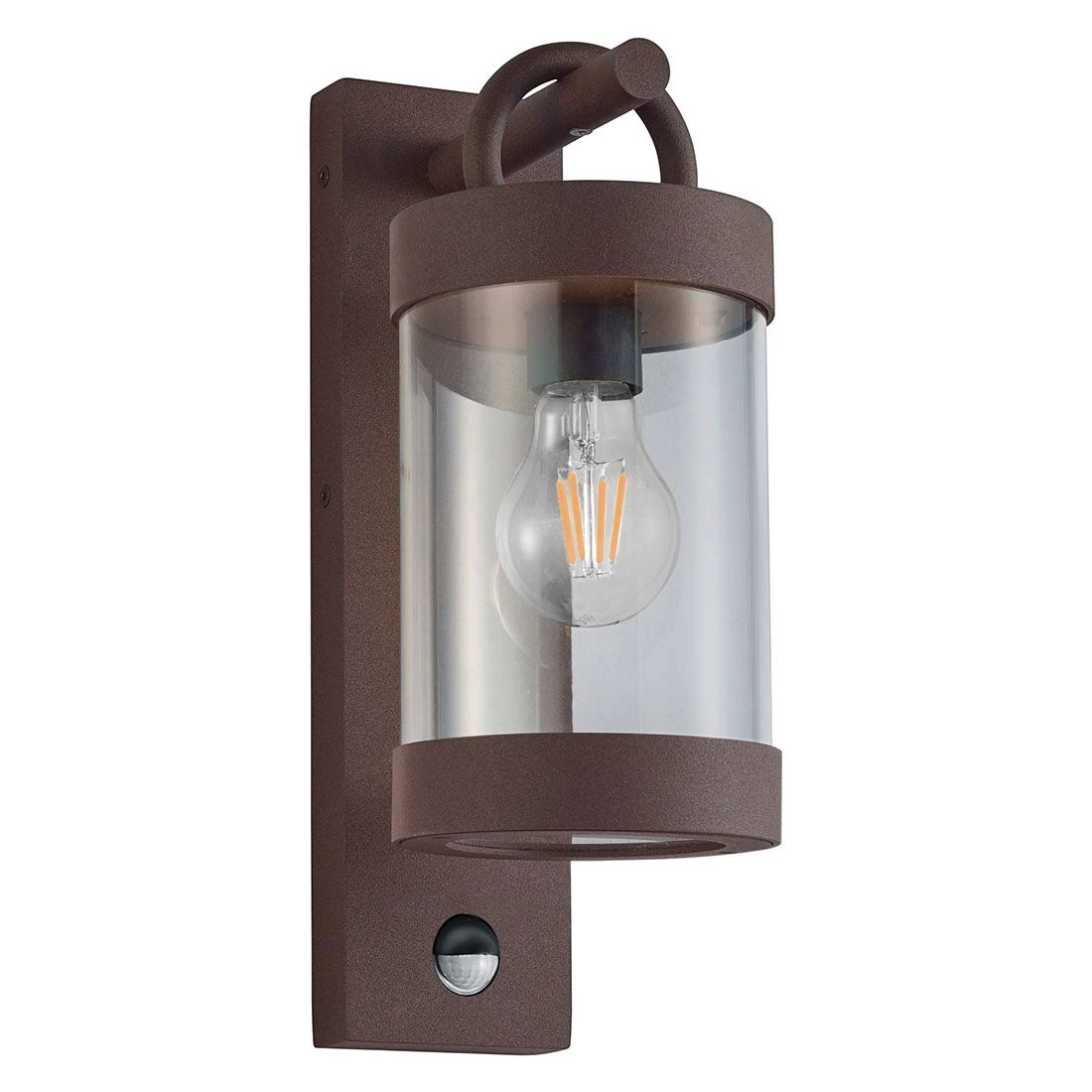 Die Trio Wandleuchte ist aus wetterbeständigem Aluminium-Druckguss gefertigt und in der Farbe Rost gehalten. Dadurch erhält sie eine überaus geschmackvolle Vintage-Optik. Unterhalb des Leuchtkörpers befindet sich der praktische Bewegungsmelder (120 ° Erfassungswinkel auf max. 9 m). Durch diesen schaltet sich das Licht automatisch ein und aus. Ihr Vorteil: In die E27-Fassung können Sie ein zu Ihrem Geschmack passendes Leuchtmittel einsetzen (max. 28 W, nicht im Lieferumfang enthalten) und so die Helligkeit und Farbtemperatur selbst bestimmen.